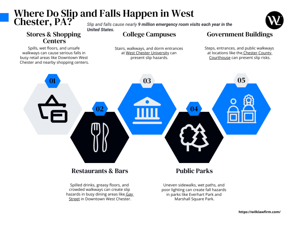 Where Do Slip and Falls Occur in West Chester?